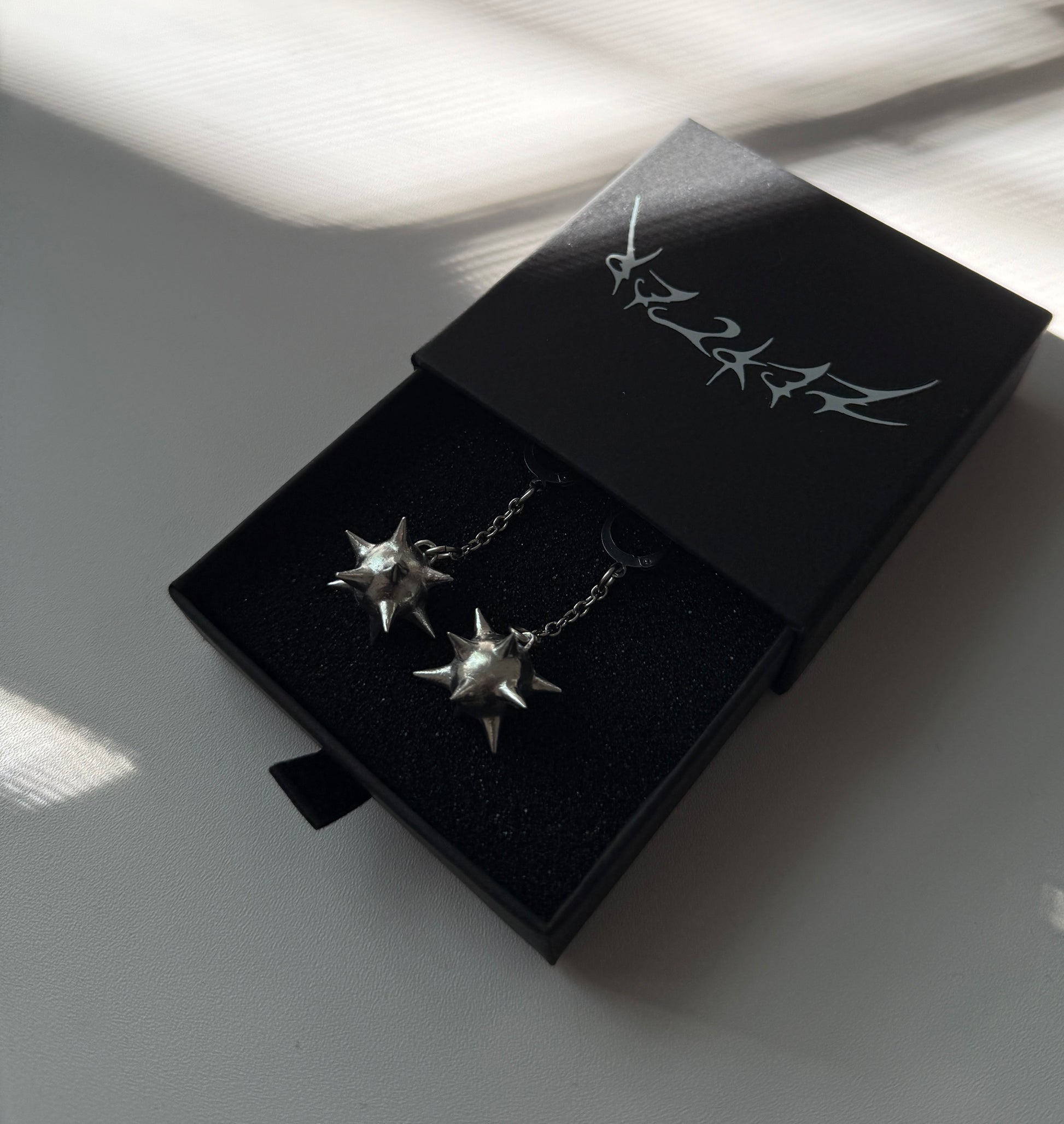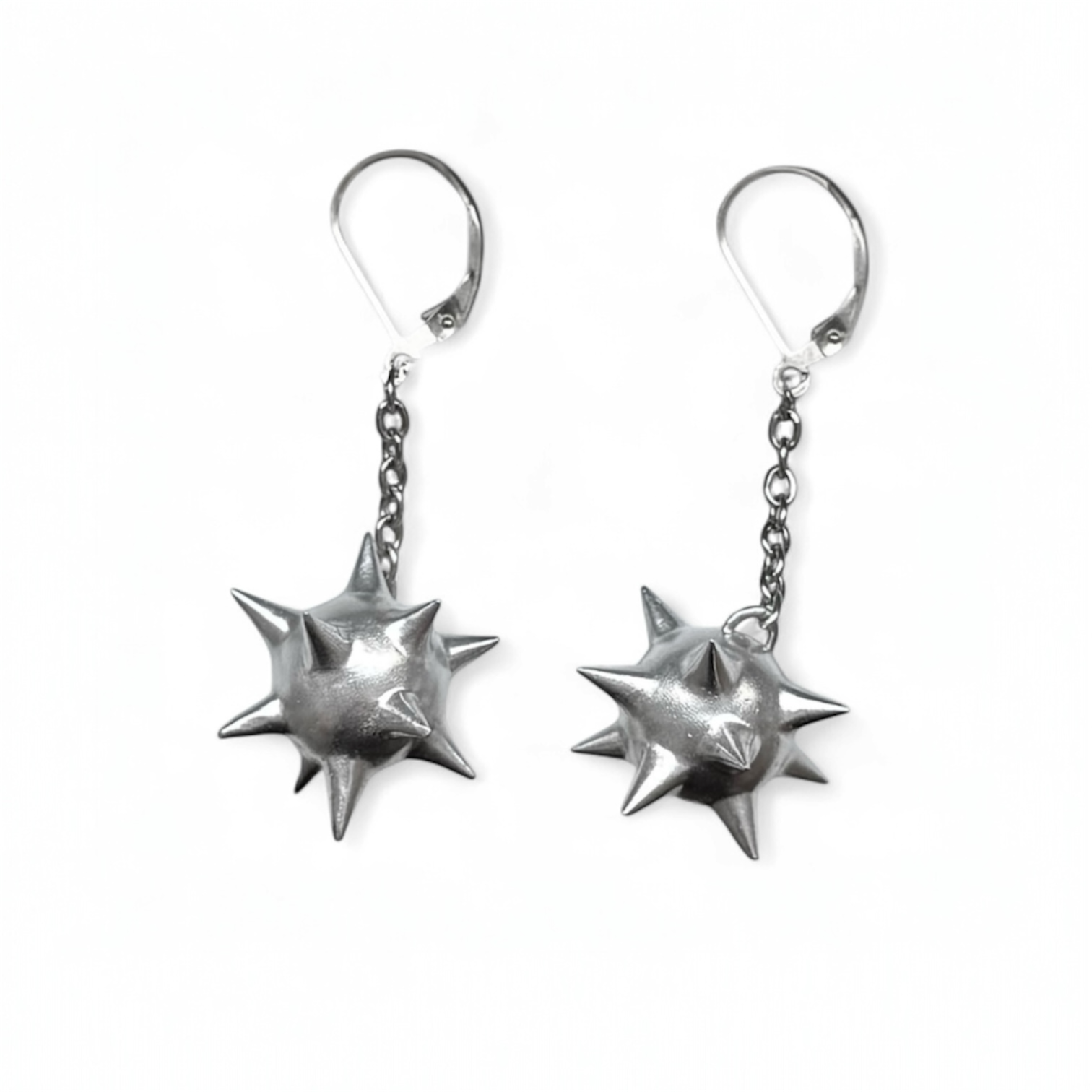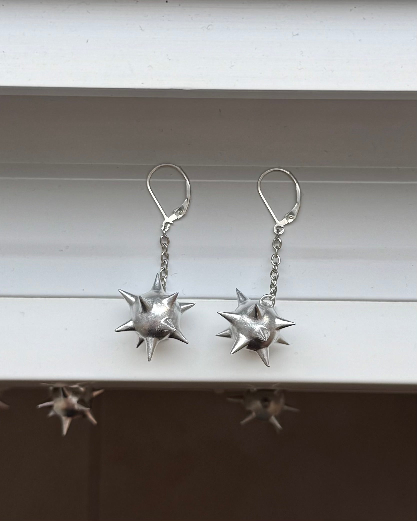 Flail earrings made from aluminum, featuring a stainless steel closure.