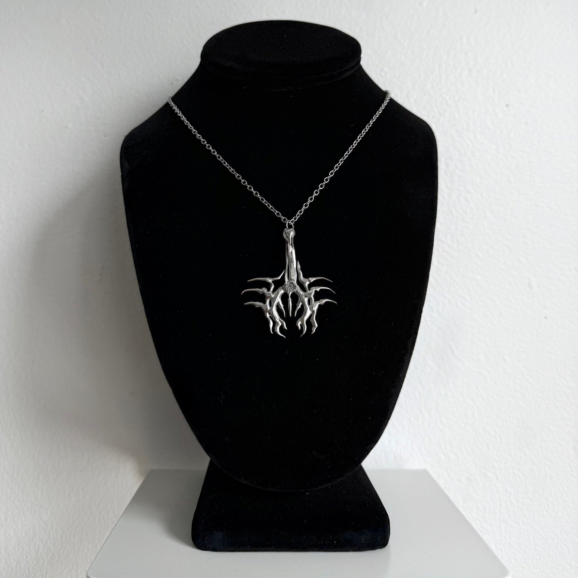 A sculptural piece from our collection, inspired by biosigilism. Precision-cast in your choice of 925 sterling silver or white brass.